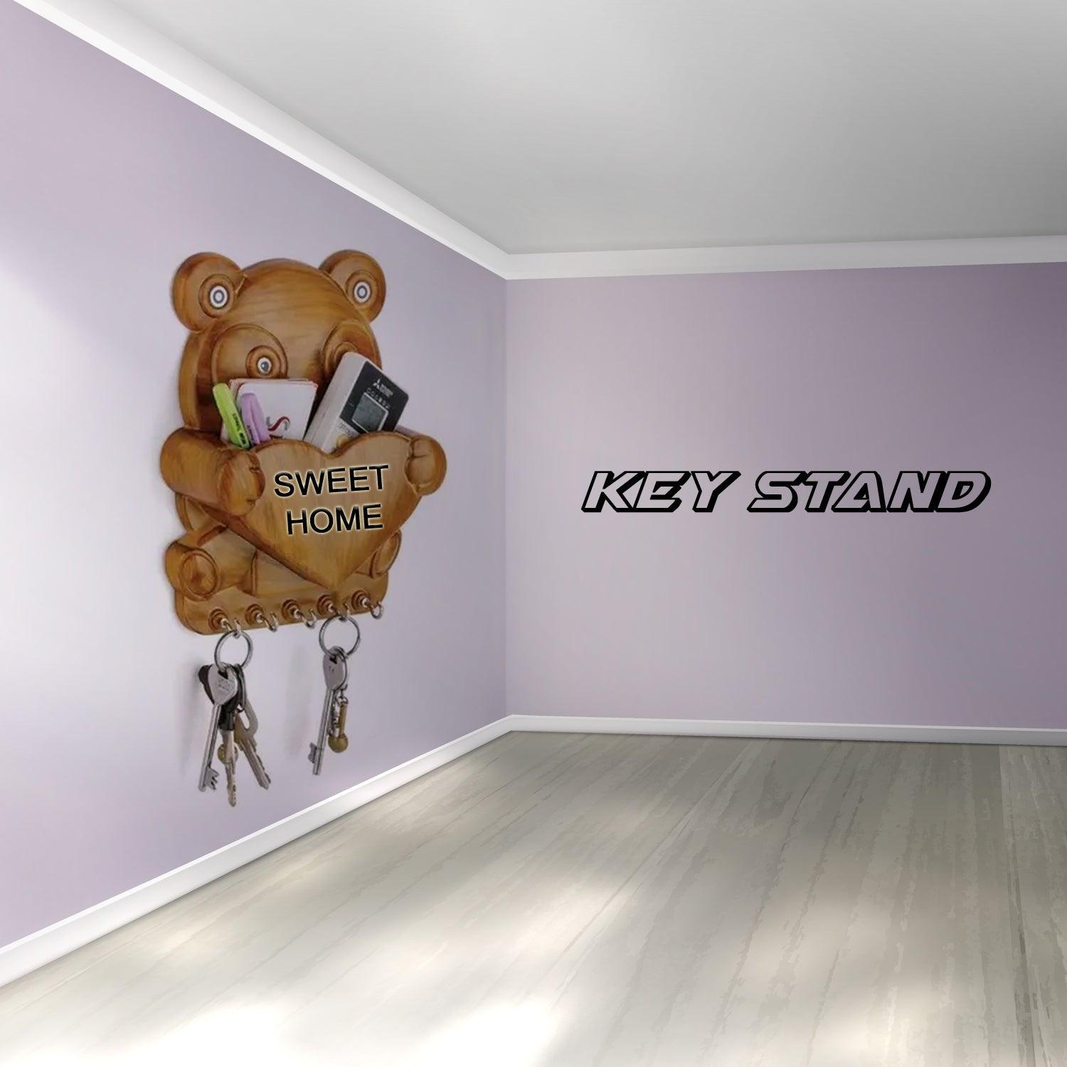 Plastic Panda Key Holder, Wall Key Rack With 5 Hooks (1 Pc)