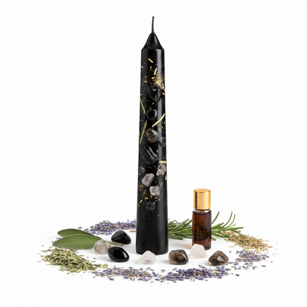 Crafted from premium paraffin wax, blended with carefully selected healing herbs and infused with a mystical spell fragrance. Each element is intentionally chosen to create a powerful tool for protection, grounding, and shielding against negativity. The herbs and fragrance used are part of our unique secret ritual blend. (For professional healers seeking complete details, we offer personal guidance—simply reach out to us directly.)