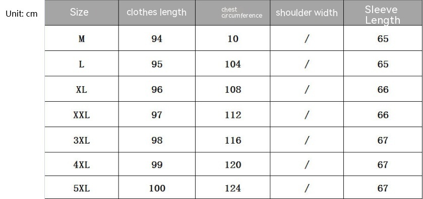 Size: Plus size M, plus size L, plus size XL, plus size XXL, plus size 3XL, plus size 4XL, plus size 5XL