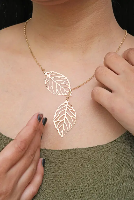 ✔ Design: Nature-inspired double leaf pendant with gold-toned finish