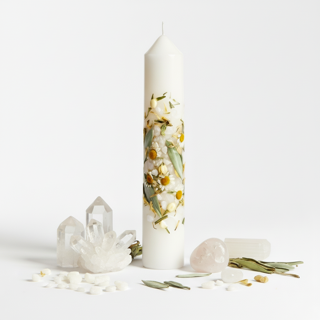 ✨ The White Taper Pillar Crystal Healing Candle is not just a candle — it is a sacred energy tool for cleansing, love, and renewal. Use it to purify your space, heal emotional wounds, or set intentions for new beginnings.