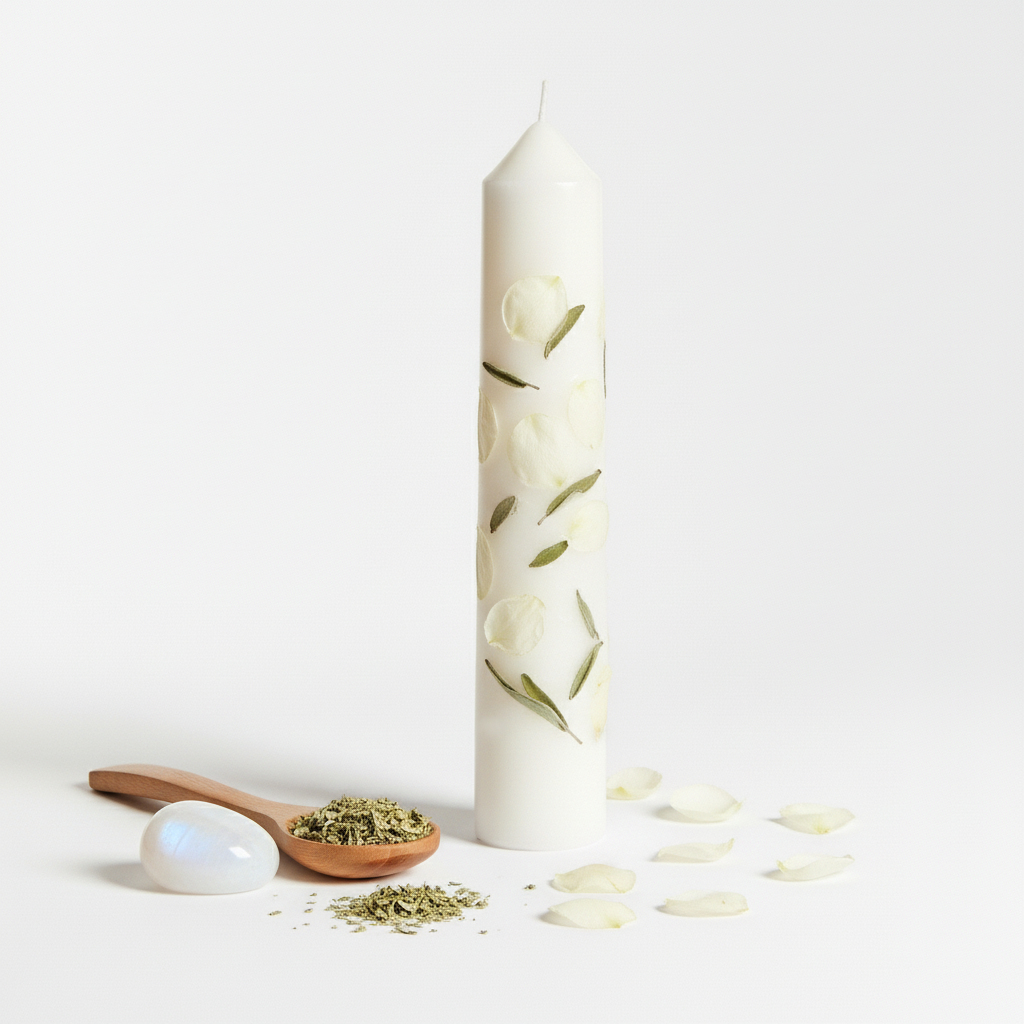 The White Candle carries a light floral and clean herbal aroma, symbolizing renewal and serenity. Its gentle fragrance makes it suitable for both spiritual practices and everyday relaxation.